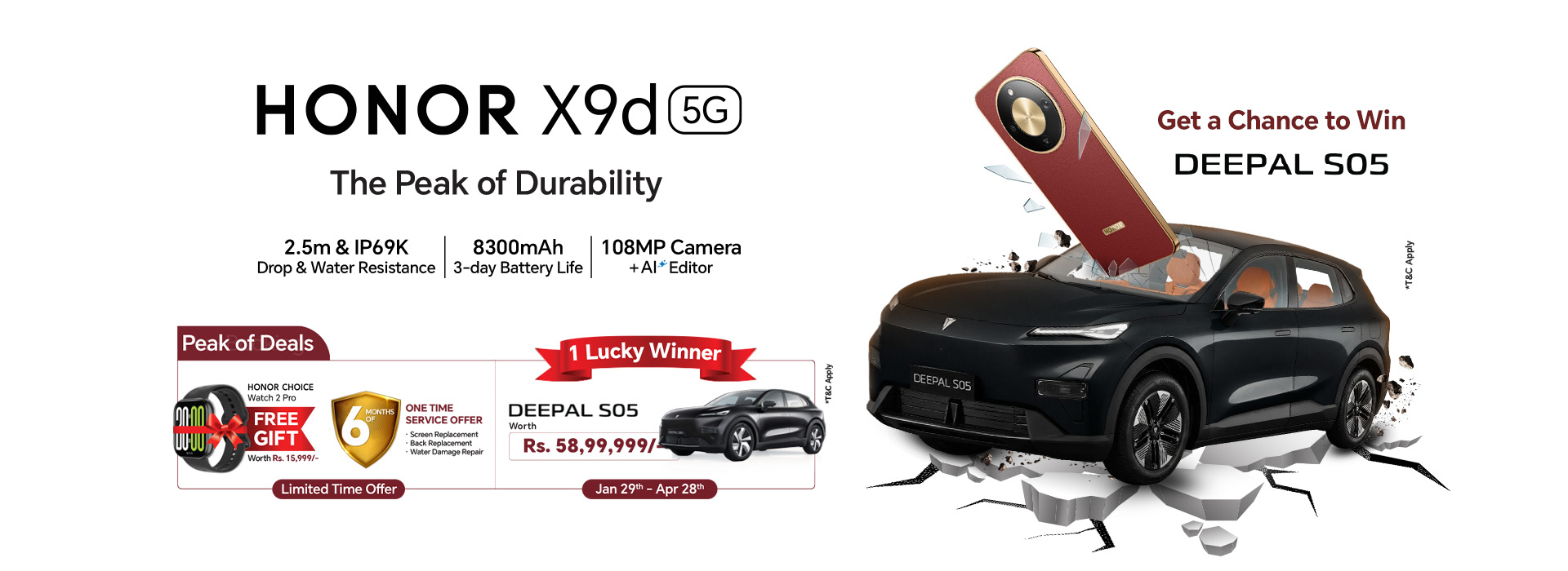 𝗛𝗢𝗡𝗢𝗥 𝗫𝟵𝗱 𝟱𝗚 — 𝗧𝗵𝗲 𝗣𝗲𝗮𝗸 𝗼𝗳 𝗗𝘂𝗿𝗮𝗯𝗶𝗹𝗶𝘁𝘆. Peak of Deals Offer is also available. In which you can get | 𝗙𝗿𝗲𝗲 𝗛𝗢𝗡𝗢𝗥 𝗖𝗵𝗼𝗶𝗰𝗲 𝗪𝗮𝘁𝗰𝗵 𝟮 𝗣𝗿𝗼 (𝗟𝗶𝗺𝗶𝘁𝗲𝗱 𝘁𝗶𝗺𝗲) | 𝟲-𝗺𝗼𝗻𝘁𝗵 𝟭 𝗧𝗶𝗺𝗲 – 𝗳𝗿𝗼𝗻𝘁 & 𝗯𝗮𝗰𝗸 𝗿𝗲𝗽𝗹𝗮𝗰𝗲𝗺𝗲𝗻𝘁 + 𝘄𝗮𝘁𝗲𝗿 𝗱𝗮𝗺𝗮𝗴𝗲 𝗿𝗲𝗽𝗮𝗶𝗿 (𝗟𝗶𝗺𝗶𝘁𝗲𝗱 𝗧𝗶𝗺𝗲) | 𝗔 𝗖𝗵𝗮𝗻𝗰𝗲 𝘁𝗼 𝘄𝗶𝗻 𝗗𝗲𝗲𝗽𝗮𝗹 𝗦𝟬𝟱 𝘄𝗼𝗿𝘁𝗵 𝟱𝟴,𝟵𝟵,𝟵𝟵𝟵/- 𝘁𝗶𝗹𝗹 𝗔𝗽𝗿𝗶𝗹 𝟮𝟴. 𝟮𝟬𝟮𝟲 | 𝟬% 𝗘𝗠𝗜 𝗔𝘃𝗮𝗶𝗹𝗮𝗯𝗹𝗲